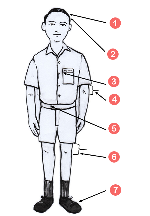- පාසල් ලාංඡනය කමිසයේ වම් පස සාක්කුවේ කෙලවර පැලදිය යුතුය..